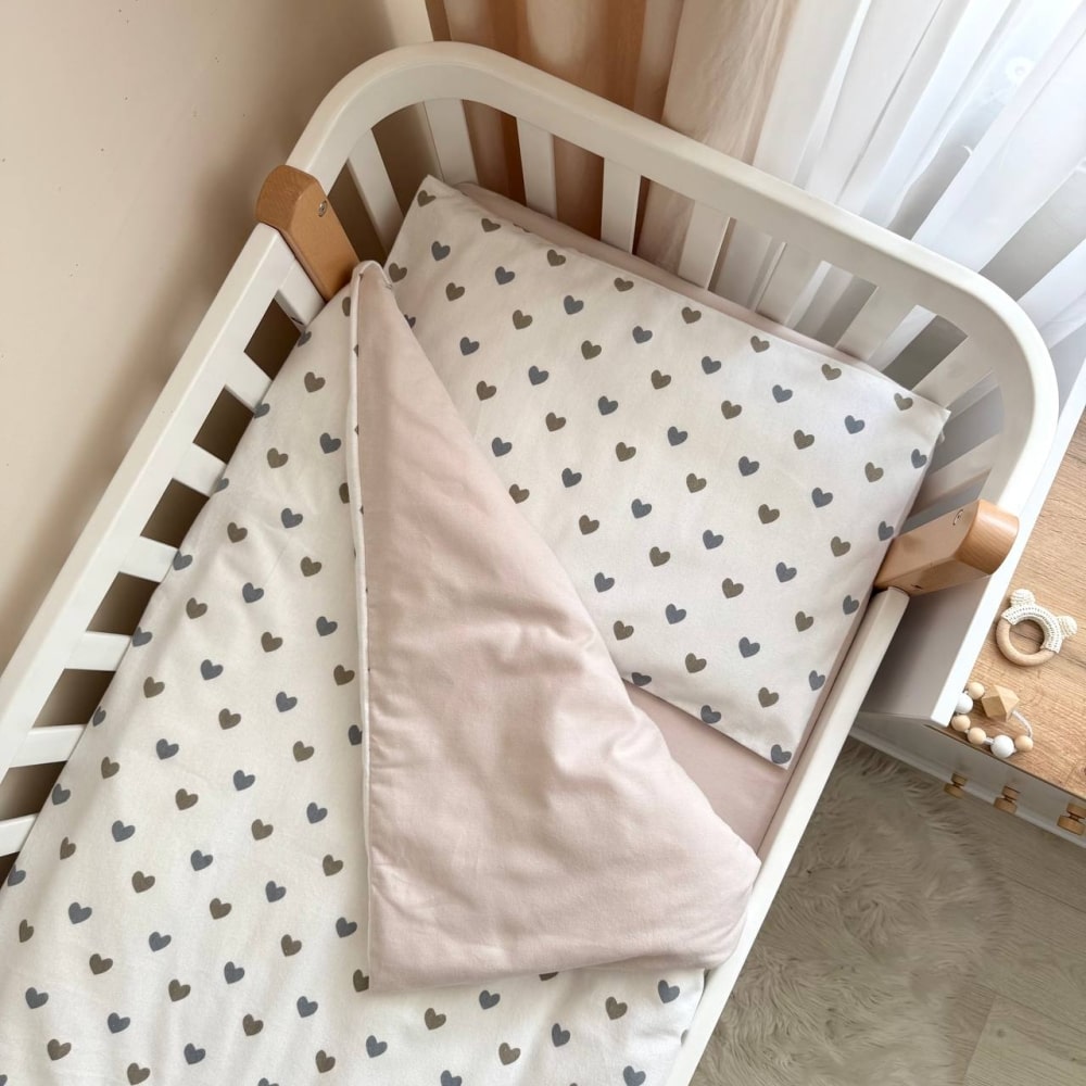 3-delni komplet posteljnine flanela “Srčki”
