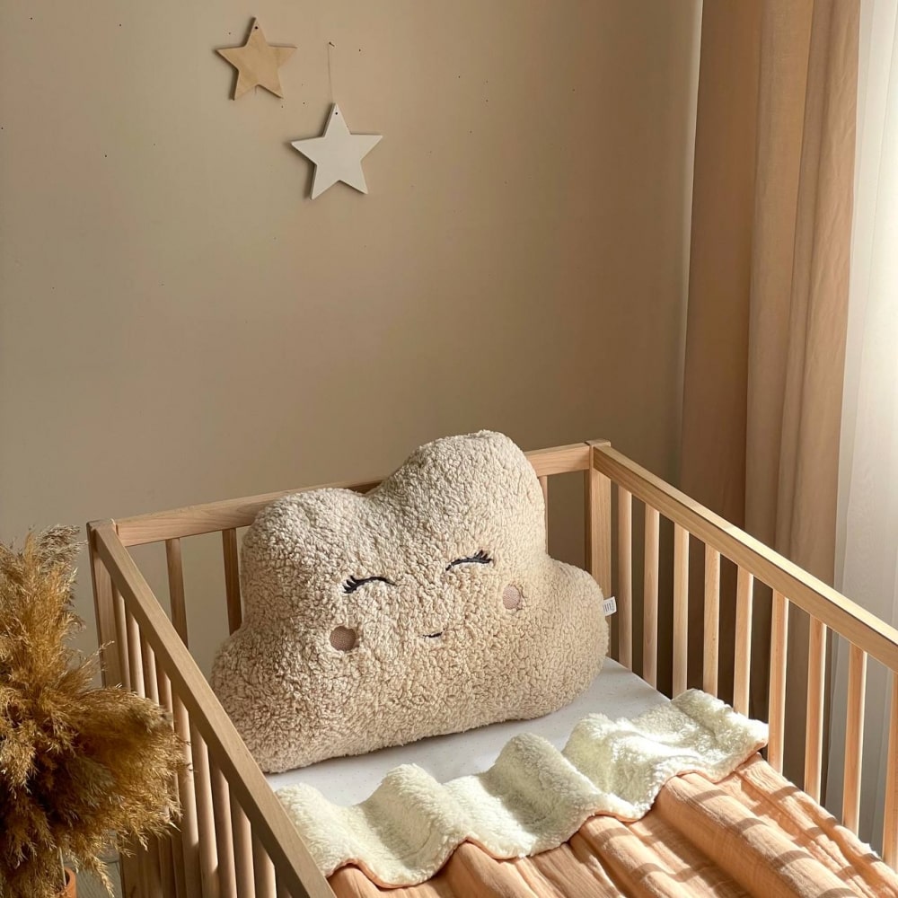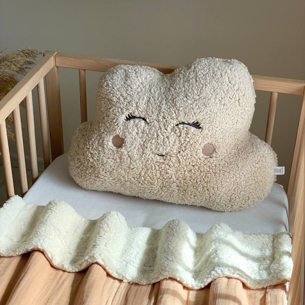 Lepa in izvirna blazina v obliki oblaka za otroško posteljico.