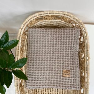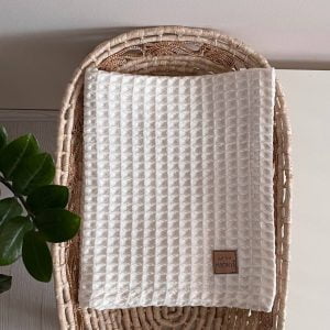 Otroška odeja iz visokokakovostne bombažne tkanine, gosta, zelo prijetna na dotik, ohrani svojo barvo po večkratnem pranju. Posebna struktura tkanja vlaken ustvari edinstven vzorec tridimenzionalne celice. Zahvaljujoč tej lastnosti je tkanina mehka, zračna in dobro vpija vlago. Odlična zračna prepustnost.