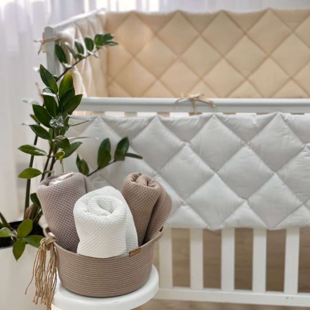 S pomočjo vezic se pritrdi na stranice posteljice in ustvari udobno “gnezdo” za spanje dojenčka. Izdelek opravlja številne uporabne funkcije: ščiti spečega otroka pred svetlobo, otroku prepreči, da bi potisnil nogico med letvice postelji.