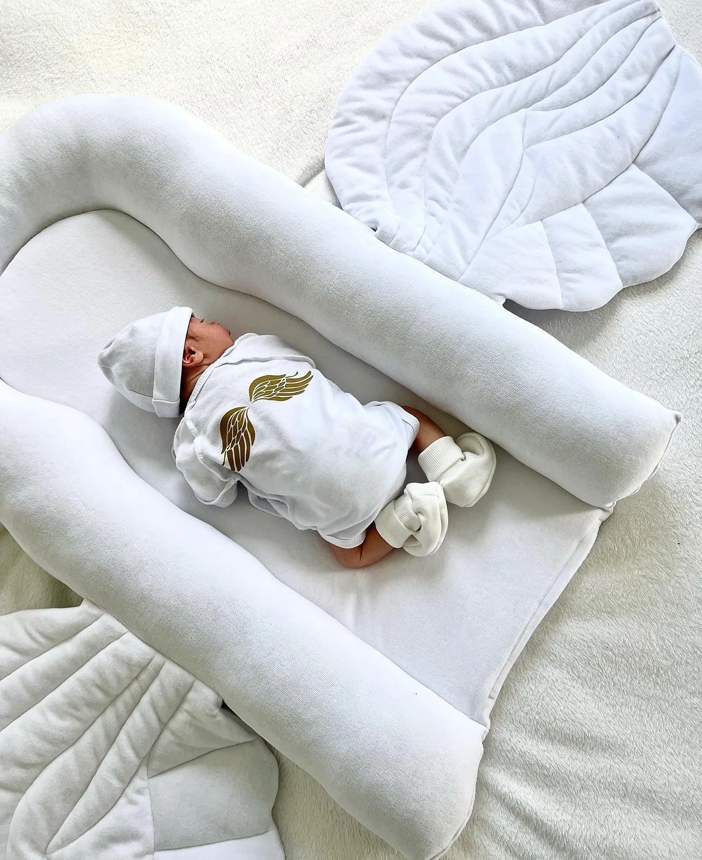Gnezdece “ANGEL” je primerno za otroke od rojstva do cca 12 mesecev. Posebna ergonomska oblika gnezdeca in krila ustvarjajo varen omejen prostor, kot v maminem trebuščku. Zato dojenčki v teh gnezdecih zelo dobro spijo.