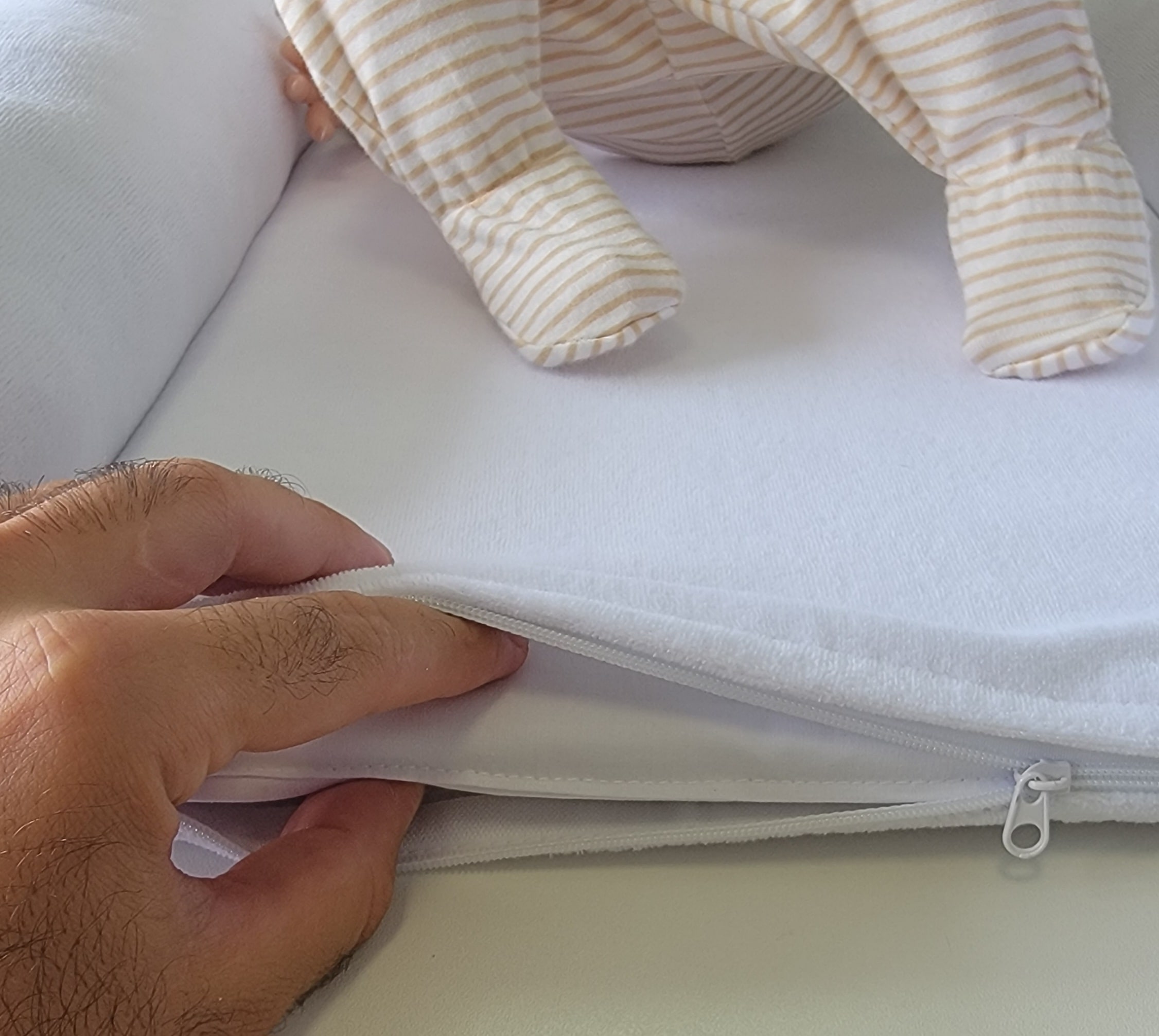 Gnezdece lahko vzamete v svojo posteljo in se ne bojite, da bi med skupnim spanjem poškodovali otroka. Izdelano je iz visokokakovostnega bombažnega velurja s hipoalergenim polnilom. Lahko se pere v pralnem stroju (glej vzdrževanje).