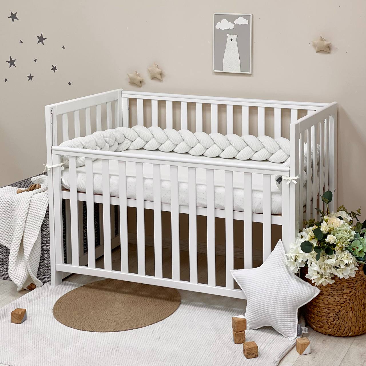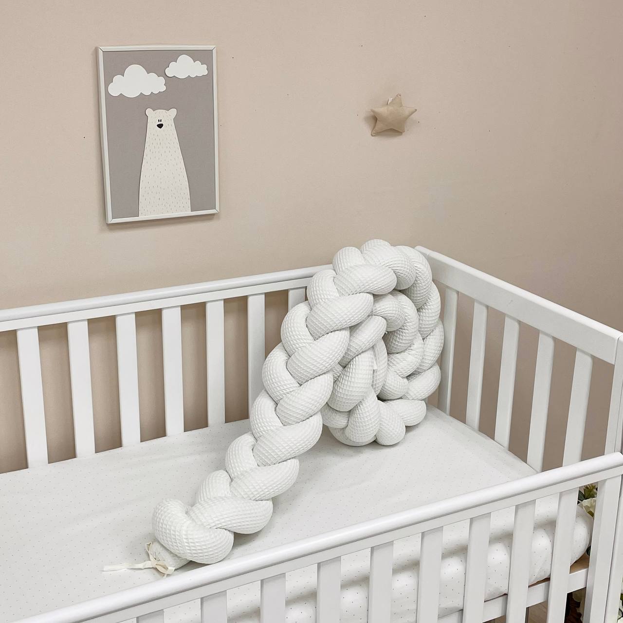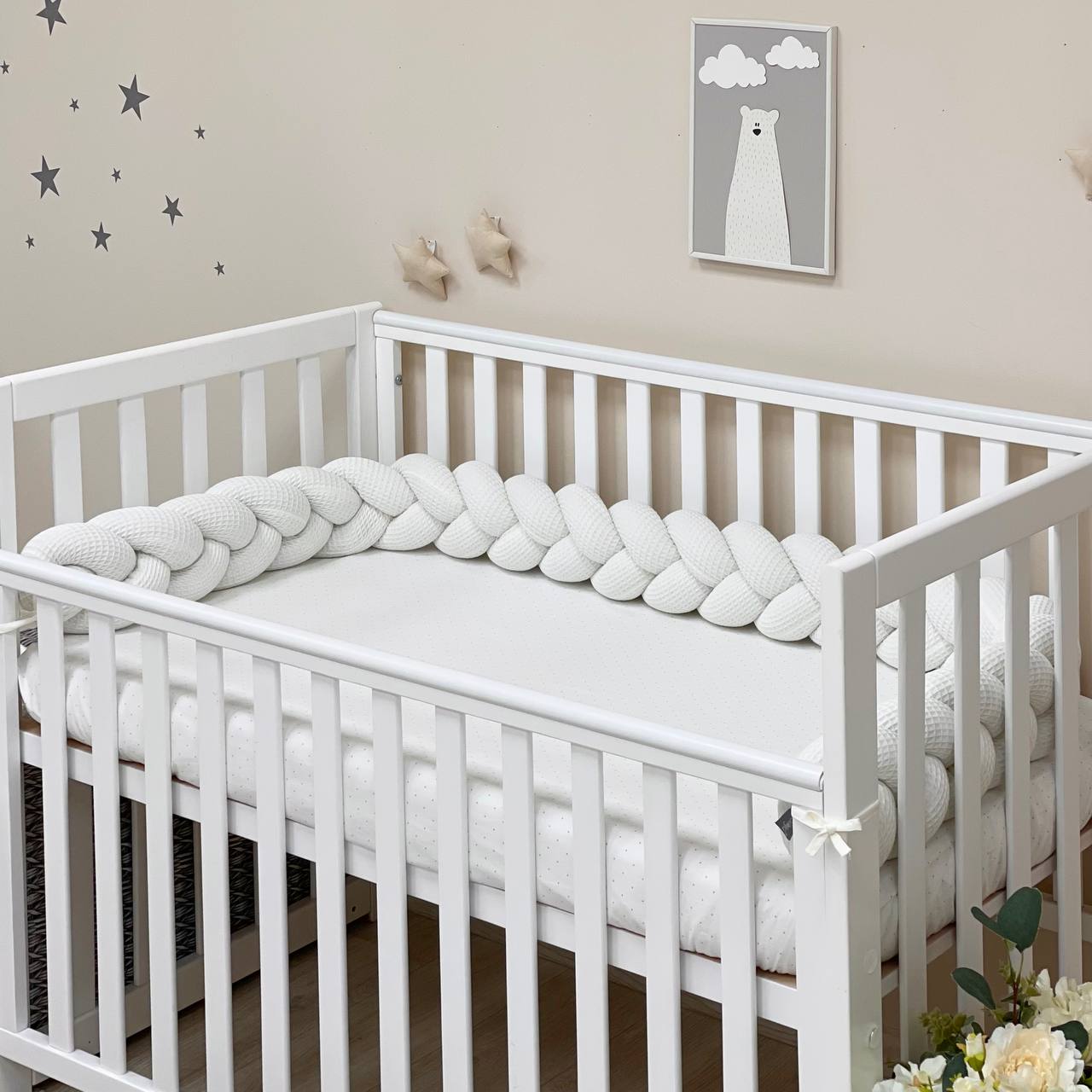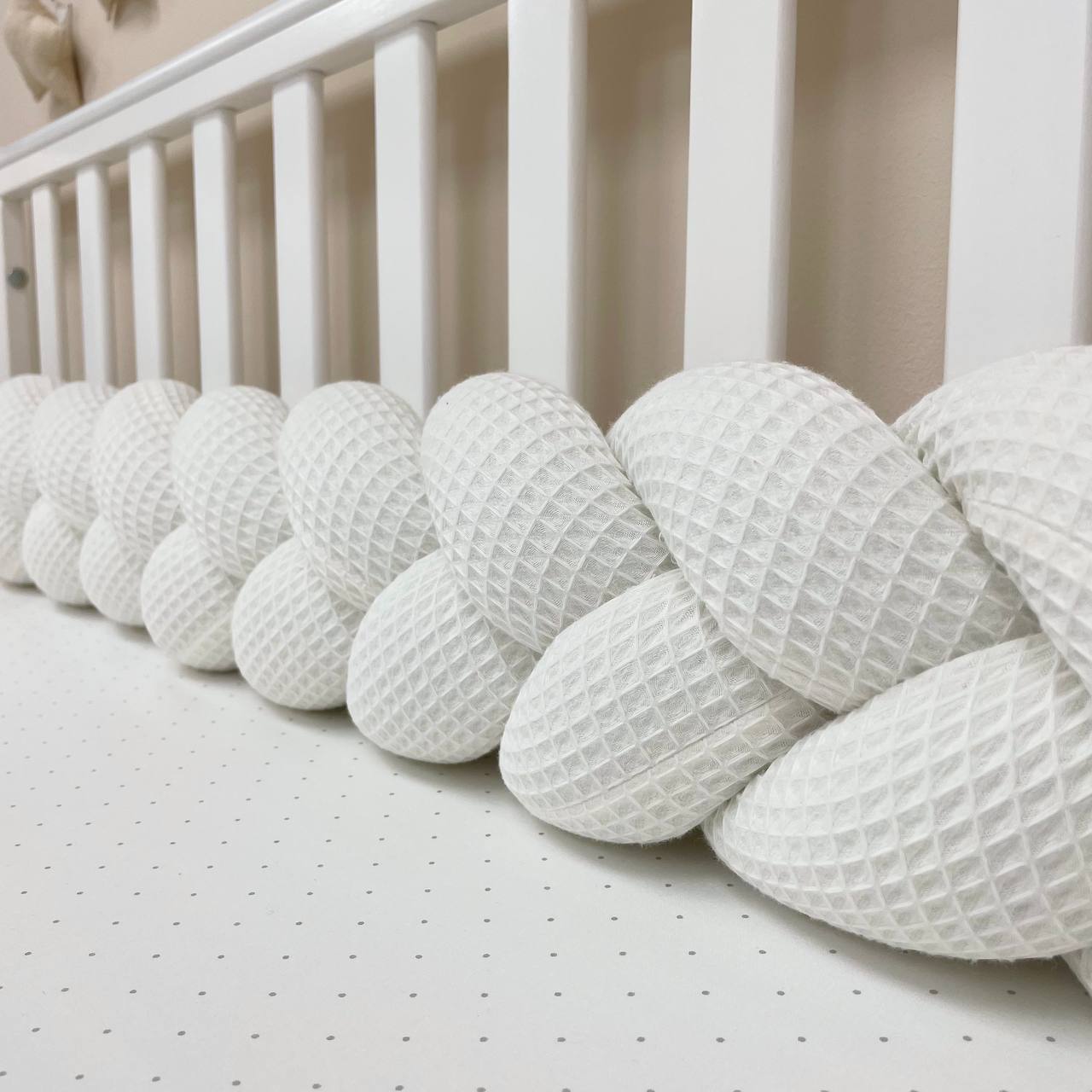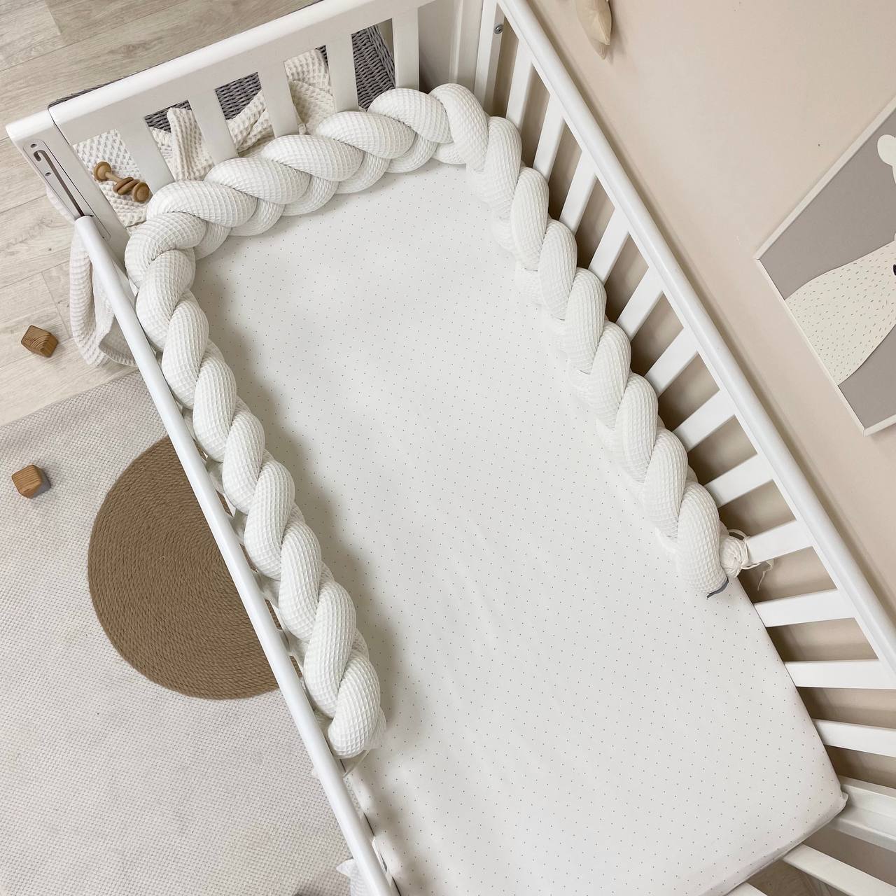 Obroba kitka je primerna za pravokotne, ovalne in okrogle posteljice. Ko otrok odraste, kitka za posteljico je nepogrešljiva za igro in okrasitev otroške sobe. Pred rojstvom dojenčka se lahko uporablja kot udobna blazina za nosečnico.
