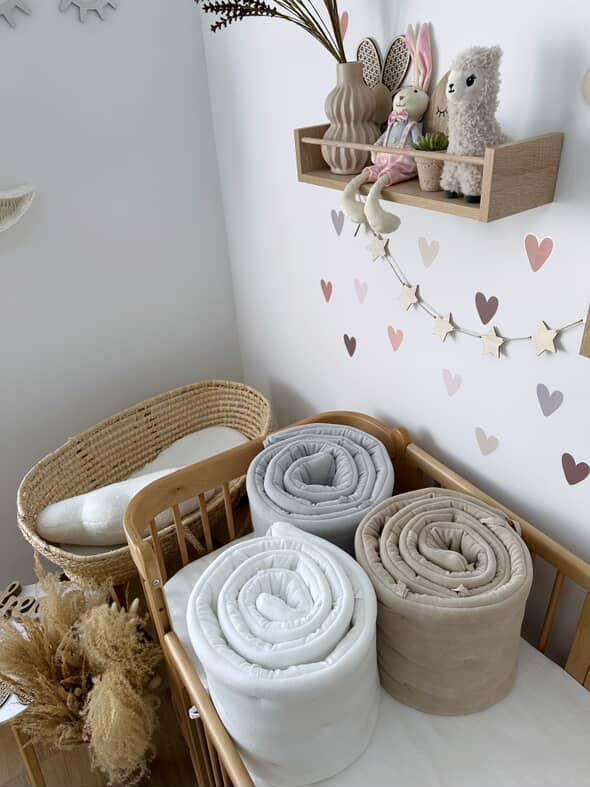Tanka obroba ne zavzame veliko prostora, a nežno objame posteljico, ščiti dojenčka pred udarci in izgleda zelo moderno in elegantno.