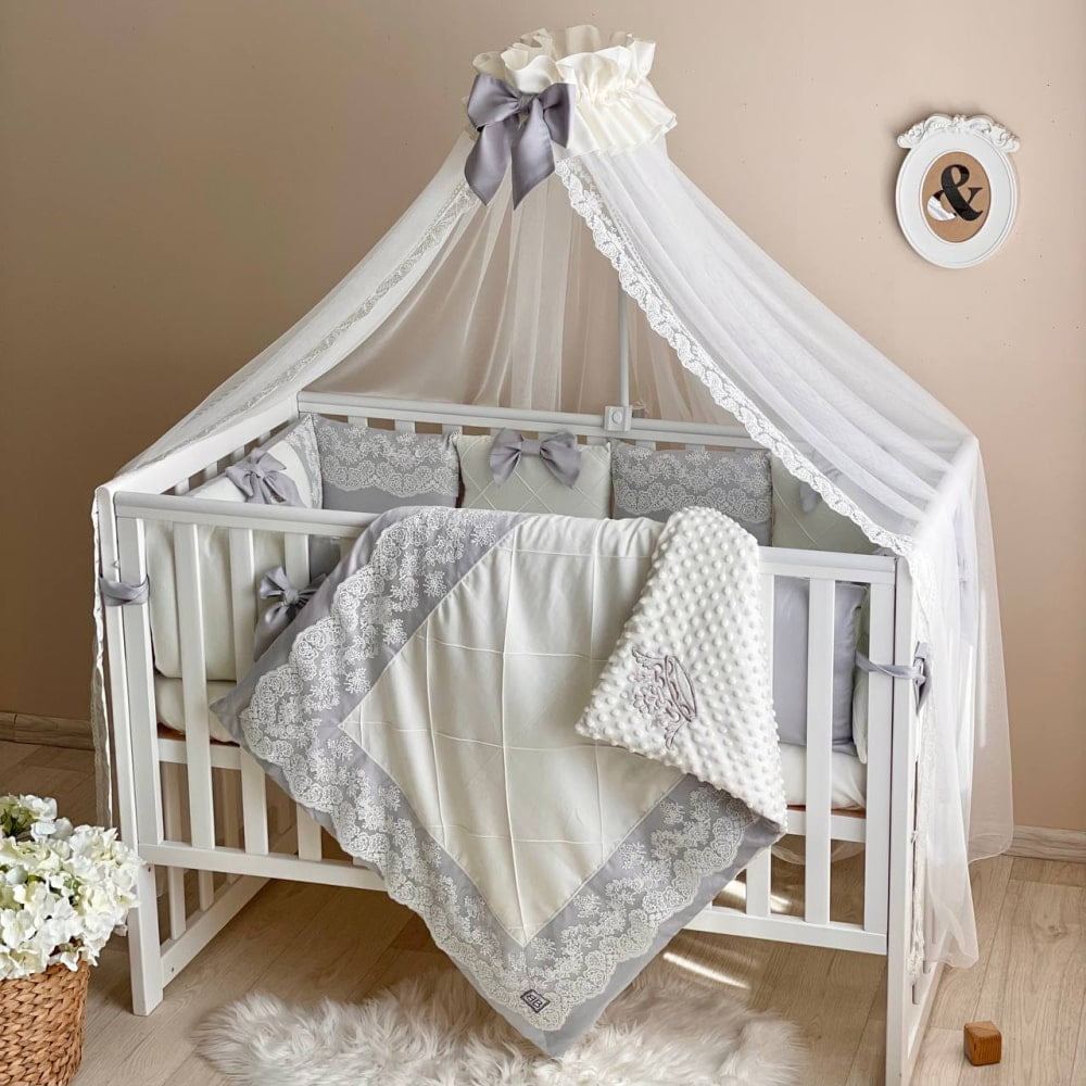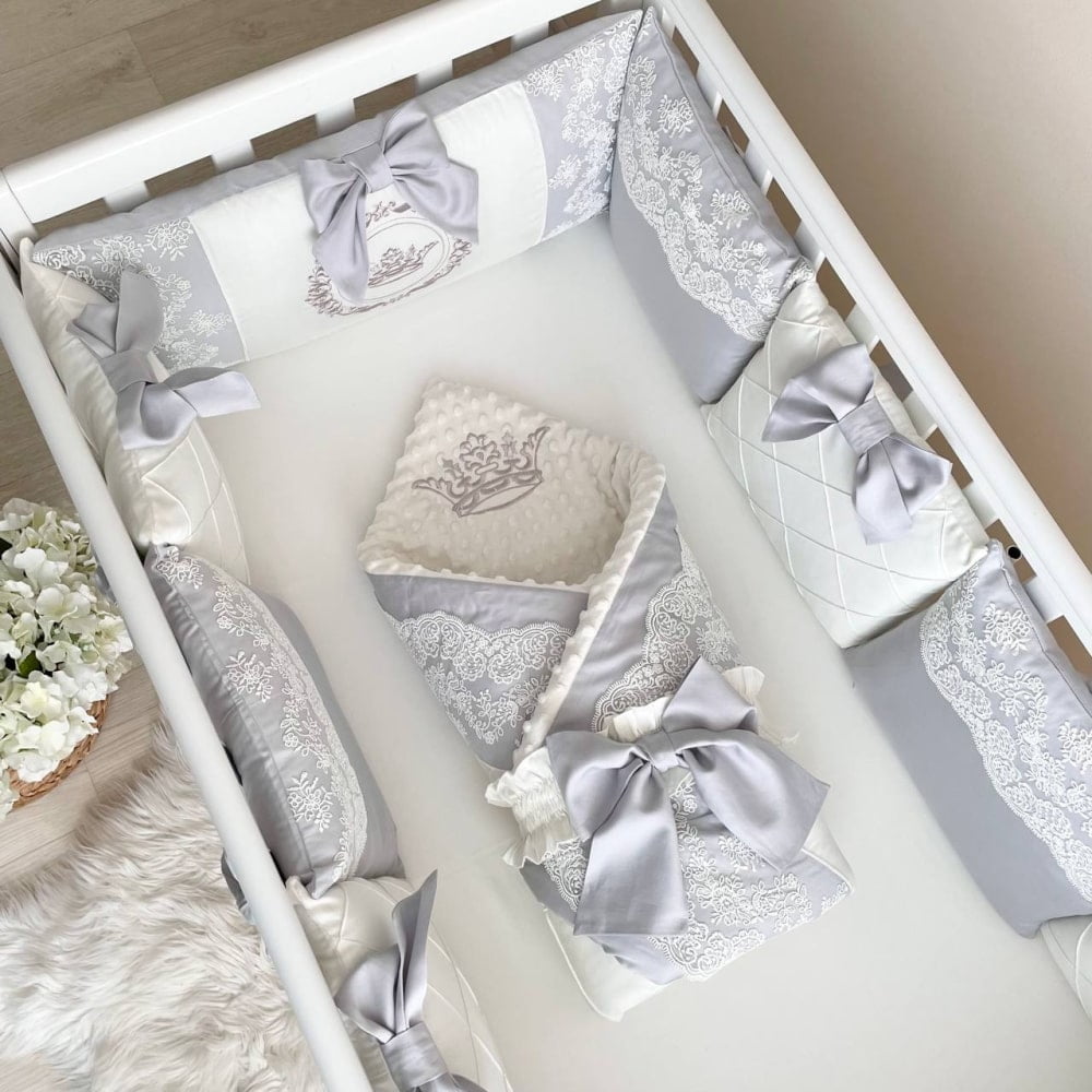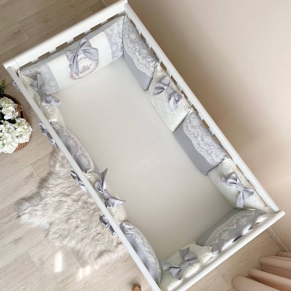 - obroba za vse 4 stranice – 10x zaščitne stranske blazine 30×32 cm vsaka in 1x blazina 30×60 cm,