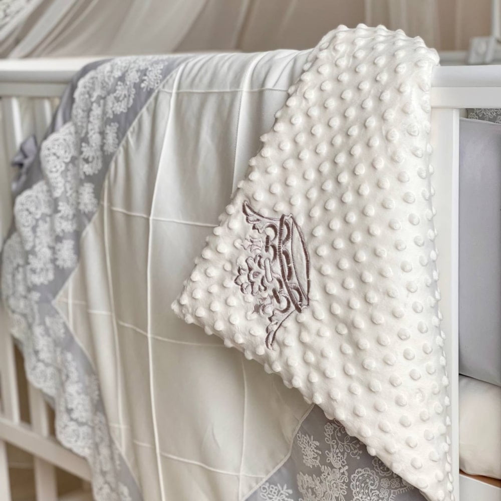 Velikost: zaščitne stranske blazine za vse 4 stranice posteljice (10x zaščitne stranske blazine 30×32 cm vsaka in 1x blazina 30×60 cm), odeja 80×100 cm s prevleko in elastiko za zavijanje, rjuha z elastiko 120×60(70) cm.