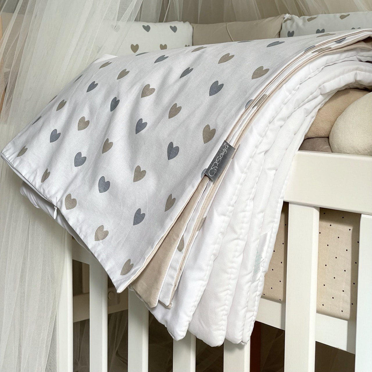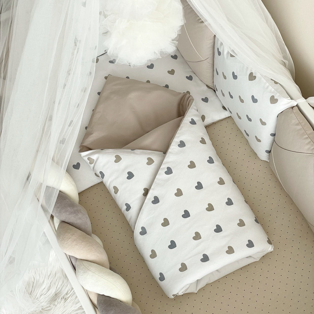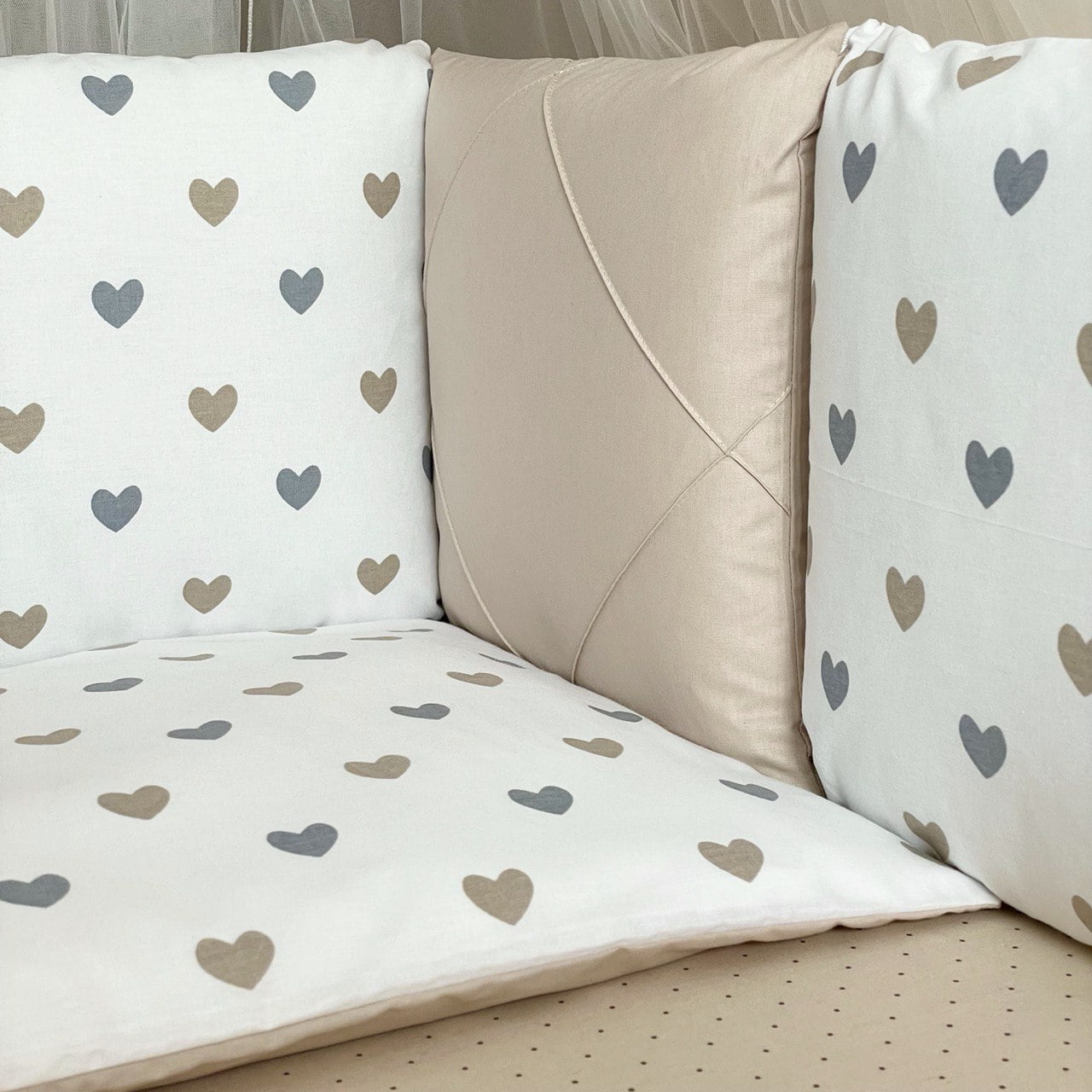 7-delni komplet posteljnine “Srčki” sivo-bež