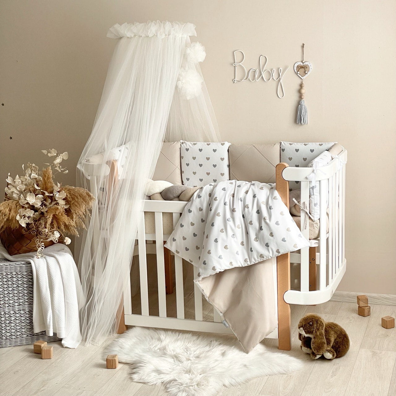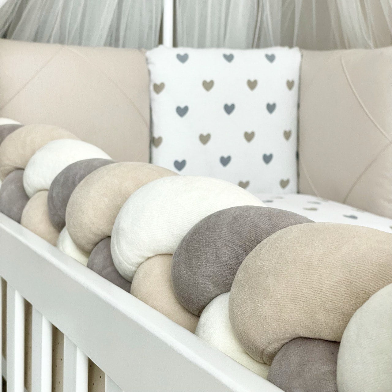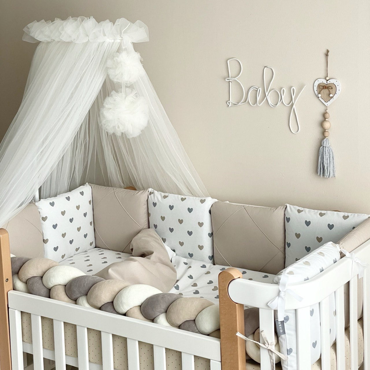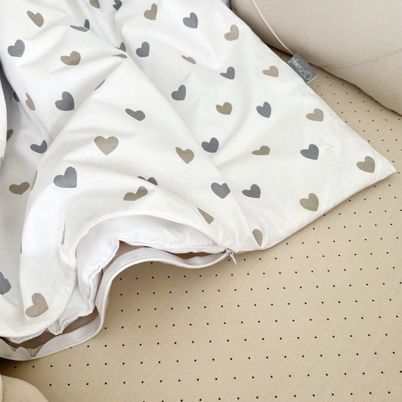 7-delni komplet posteljnine “Srčki” sivo-bež