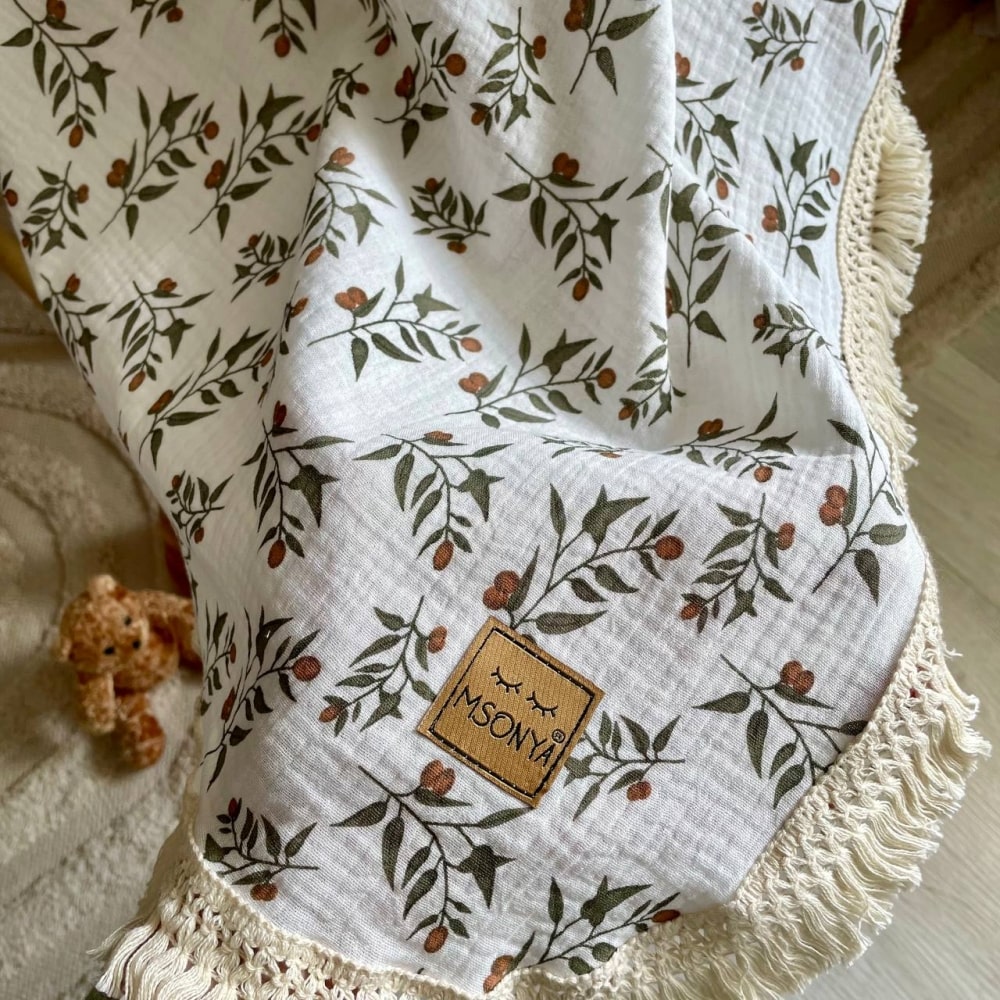 Muslin dekica z resicami “Olive”