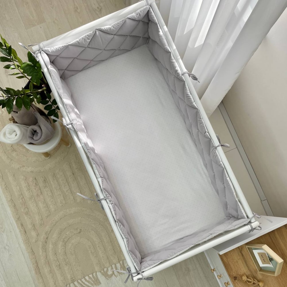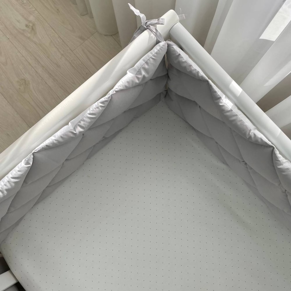S pomočjo vezic se pritrdi na stranice posteljice in ustvari udobno “gnezdo” za spanje dojenčka. Izdelek opravlja številne uporabne funkcije: ščiti spečega otroka pred svetlobo, otroku prepreči, da bi potisnil nogico med letvice postelji.