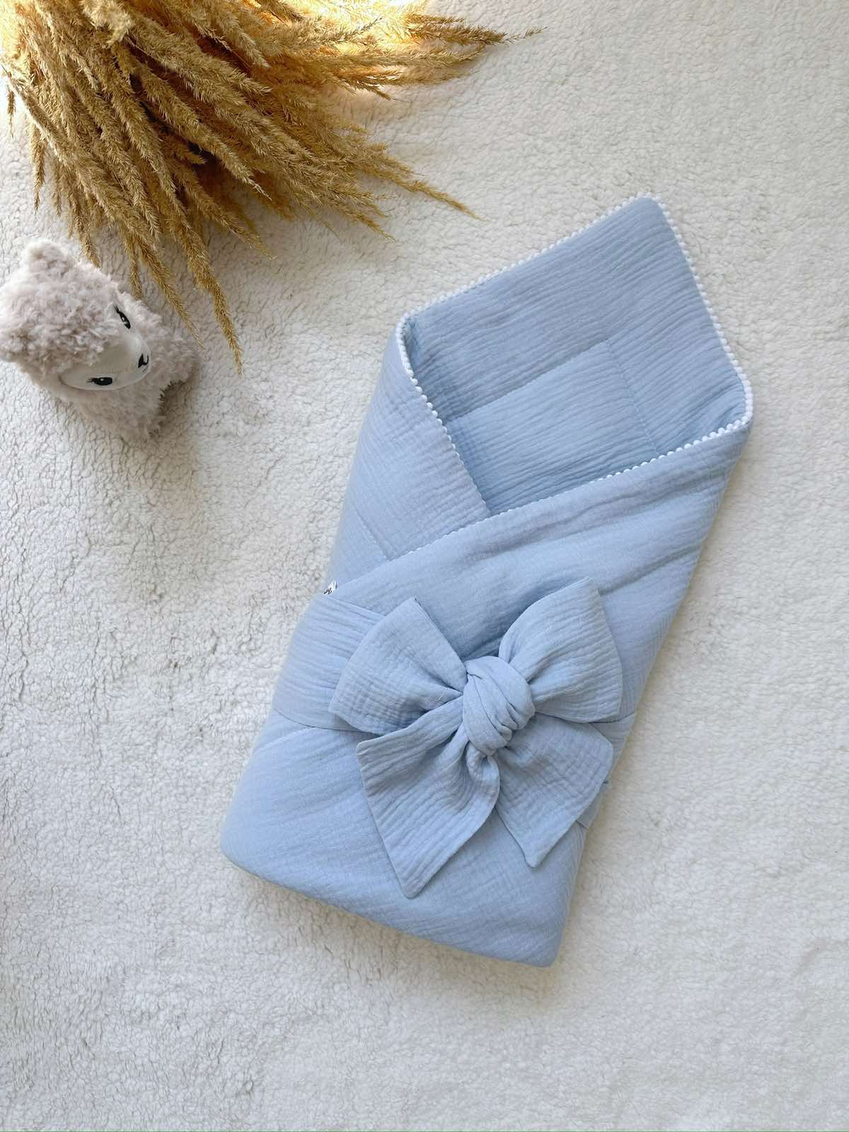 Odejica muslin s trakom, modra