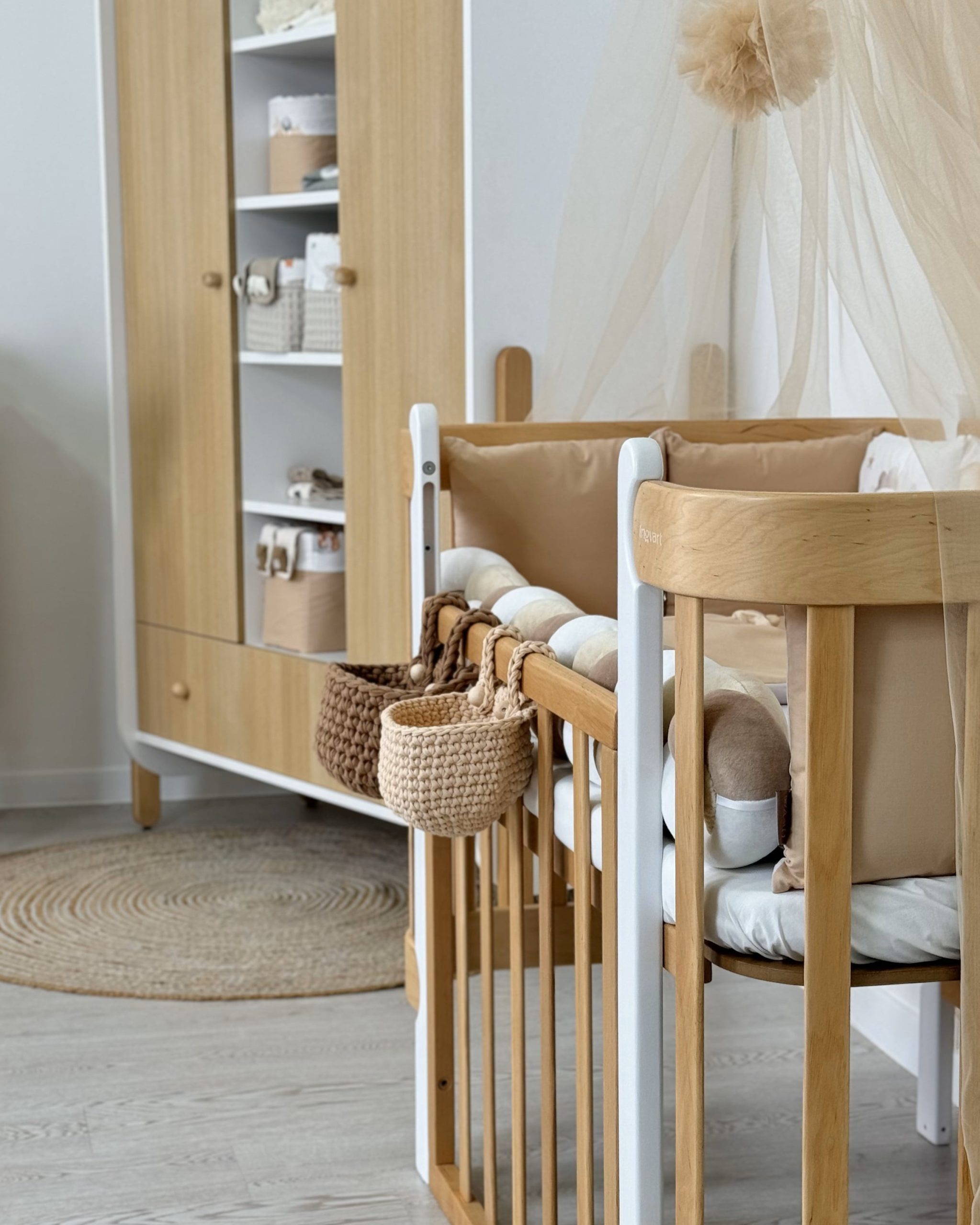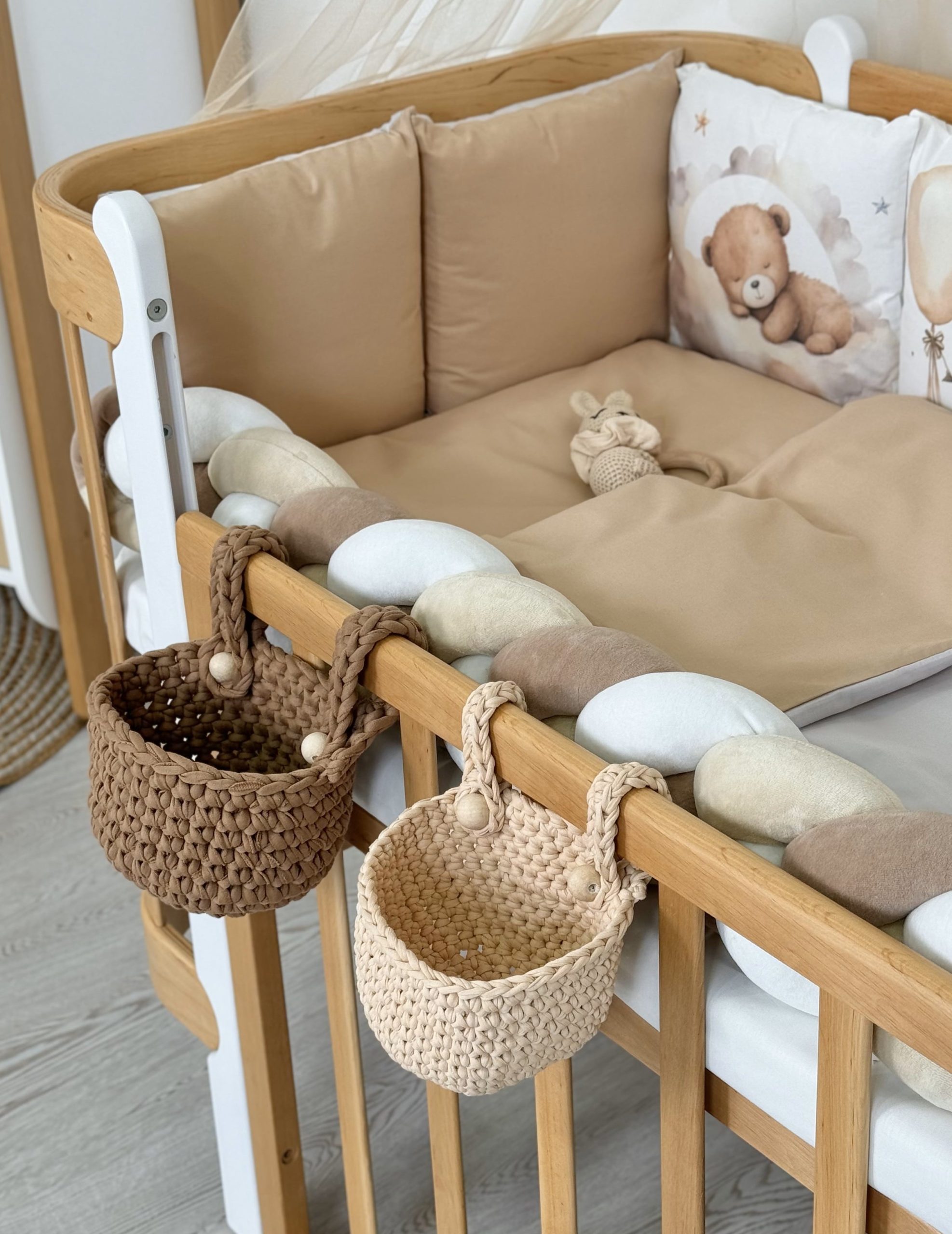 Igrače, pleničke in drugi nujni pripomočki ostanejo na enem mestu in pri roki. Organizator je namenjen za pritrditev na otroško posteljico.