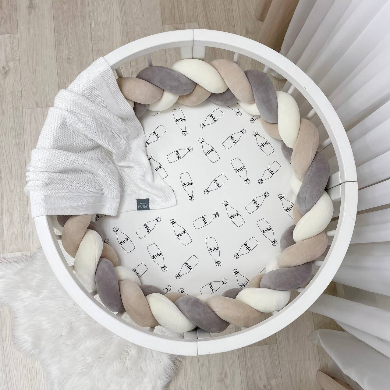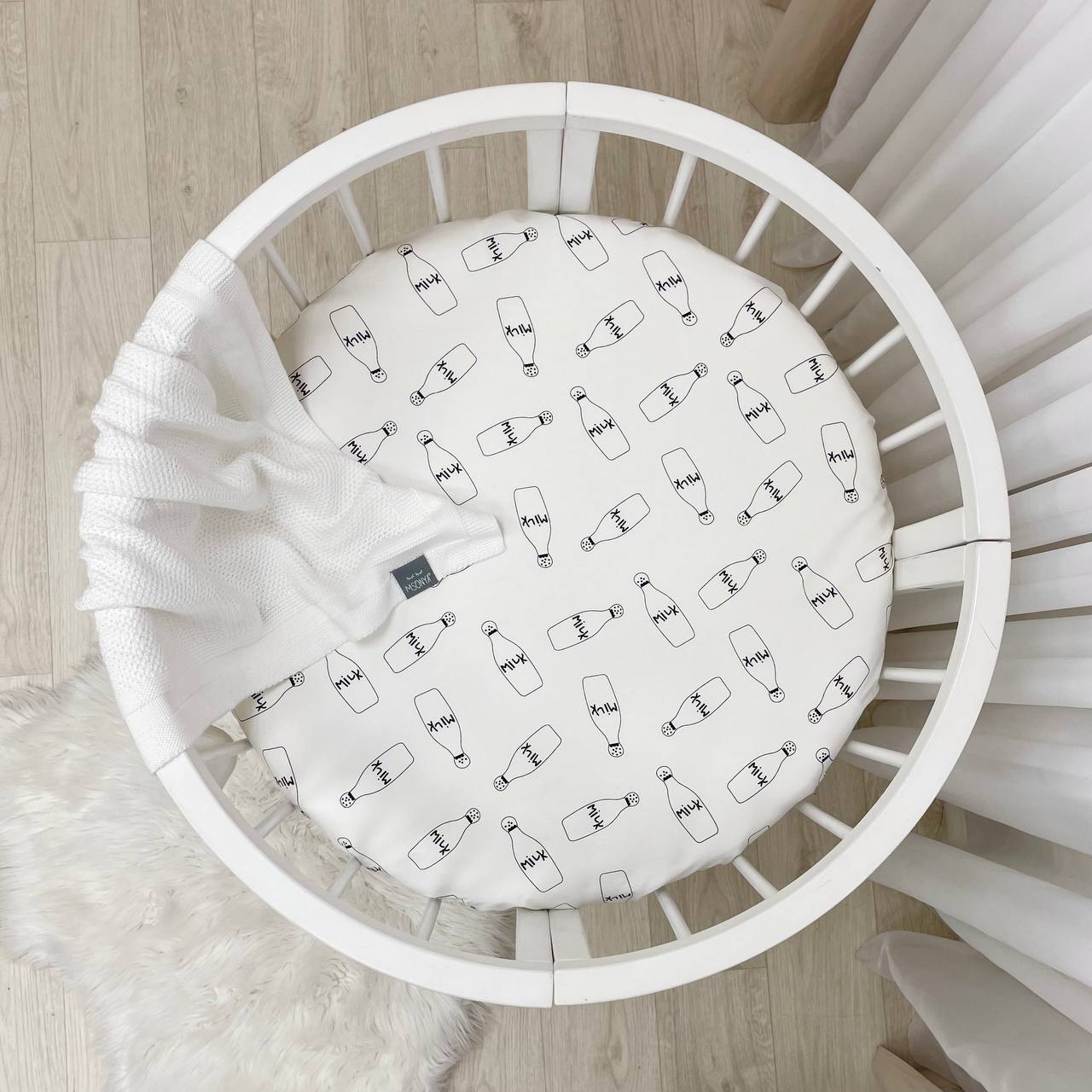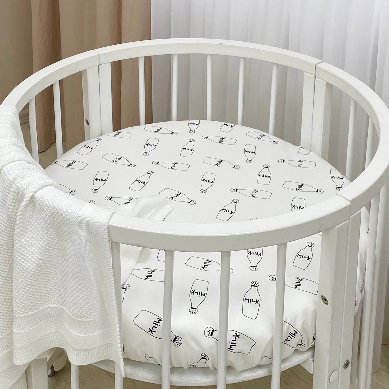 Napenjalna rjuha z elastiko se popolnoma prilagodi vzmetnici v okrogli posteljici in ostaja na svojem mestu tudi, če se otrok med spanjem zelo premetava.