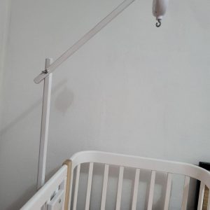 • Enostavna montaža — s pomočjo nosilca se namesti na posteljico ali pa, če imate baldahin, lahko vrtiljak namestite direktno na stojalo za baldahin;